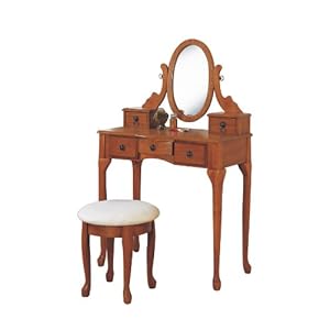 Tags : Offer Poundex Vanity Set with Stool, 5-Drawer, Oak Best price